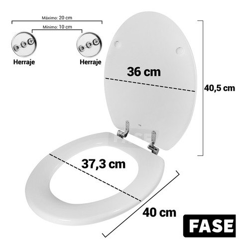 Con dimensiones de 40 cm de largo y 37.3 cm de ancho, se adapta a la mayoría de los inodoros estándar. Su bisagra metálica garantiza un soporte firme y estable, lo que la convierte en una opción segura y práctica. Su peso de 3.3 kg facilita el manejo, mientras que el diseño liso permite una limpieza sencilla y rápida.