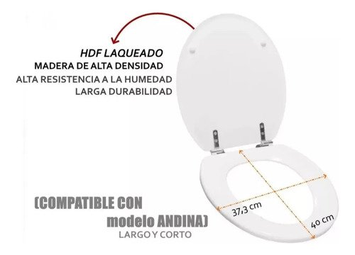 Asiento Tapa Inodoro Andina Hdf Laqueado Gloa Herraje Metali Blanco