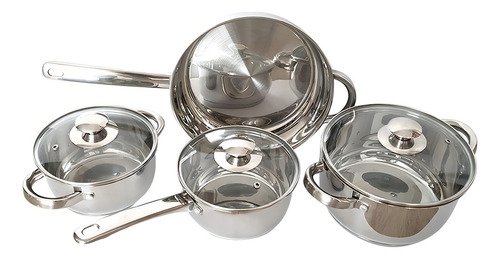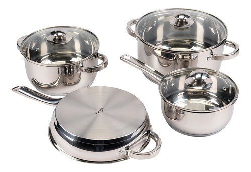 Bateria Cocina Triple Fondo Acero Inox 4pzs Sarten Y 3 Ollas Color Plateado