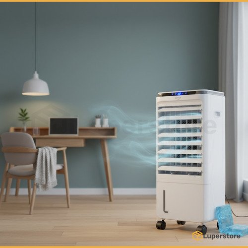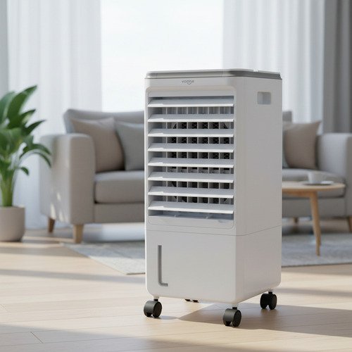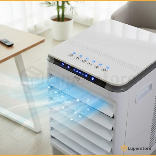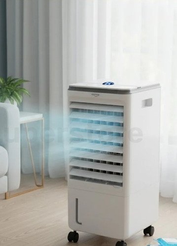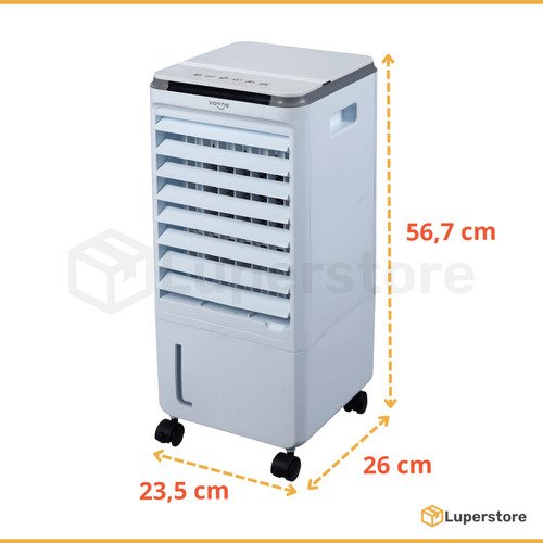 Este climatizador portátil de la marca Vonne es la solución ideal para combatir el calor. Con una capacidad total de 8 litros, cuenta con un tanque de 7 litros en la base y 1 litro en la parte superior, asegurando un funcionamiento prolongado. Su potente volumen de flujo de aire de 280 m³/h y una velocidad de 7 m/s te brindan un ambiente fresco y confortable. Ofrece 3 posiciones de velocidad y un temporizador de hasta 7 horas, permitiéndote personalizar tu experiencia. La oscilación automática garantiza una distribución uniforme del aire, mientras que el control remoto y su funcionamiento silencioso añaden comodidad. Con un bajo consumo de solo 80 W, es eficiente y amigable con el medio ambiente. Incluye 2 hielos refrigerantes para un enfriamiento adicional. Sus dimensiones compactas de 23,5 cm de largo, 26 cm de ancho y 56,7 cm de alto lo hacen perfecto para cualquier espacio.