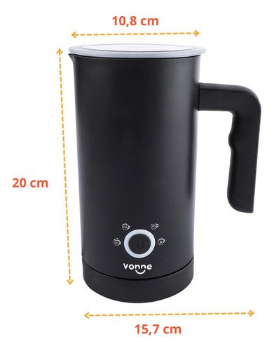 El Espumador de Leche Vonne 3 en 1 es la herramienta ideal para los amantes del café y la leche espumada. Su elegante color negro y su construcción de acero inoxidable le brindan un toque moderno y duradero, perfecto para cualquier cocina. Con funcionalidades de calentamiento y espumado, podrás disfrutar de una variedad de bebidas a la temperatura perfecta.
