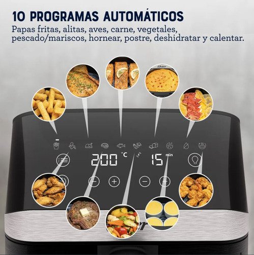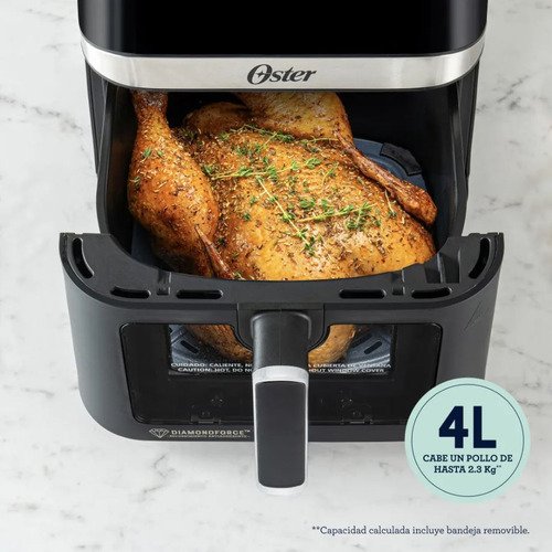 Con dimensiones compactas de 29 cm de altura, 29.31 cm de ancho y 36.19 cm de largo, la Freidora de Aire Oster se adapta fácilmente a cualquier cocina, optimizando el espacio sin sacrificar funcionalidad. Ideal para quienes buscan una alternativa más saludable a la fritura convencional, este electrodoméstico es perfecto para preparar desde papas fritas crujientes hasta verduras asadas y postres.