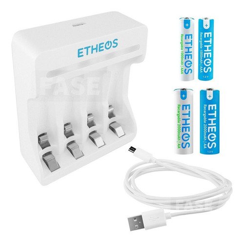Kit Cargador Usb + Pilas Recargables (2 Aa Y 2 Aaa) Etheos