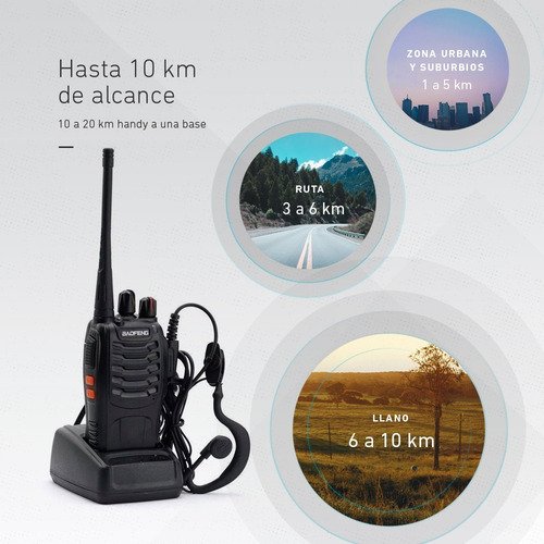 • Alcance: 3 a 5 km en ciudad – 5 a 10km en campo abierto – Handy a una base 10km en ciudad – Handy a una base 20km en campo abierto.