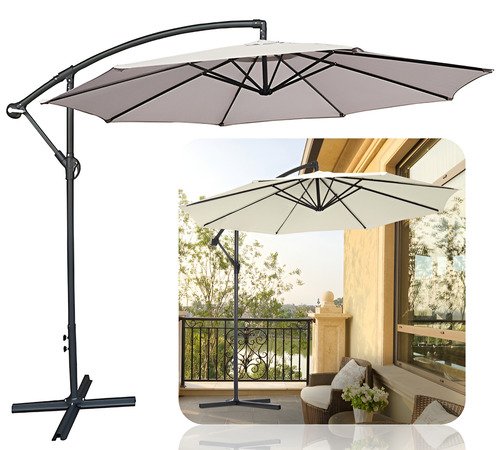 Sombrilla De Jardin Lateral Natural Con Base En Cruz
