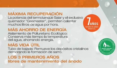 Con una eficiencia energética clasificada como B en varios países de América Latina, este termotanque combina el uso efectivo de gas natural envasado, garantizando un consumo de 6000 kcal/h. Equipado con características adicionales como válvula de seguridad, protección anti-corrosiva y encendido piezoeléctrico, asegura tanto la durabilidad como la facilidad de uso.