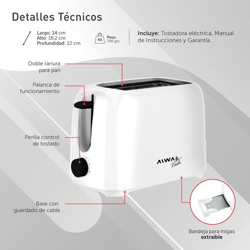 Tostadora Eléctrica Aiwa AWK-TO700B